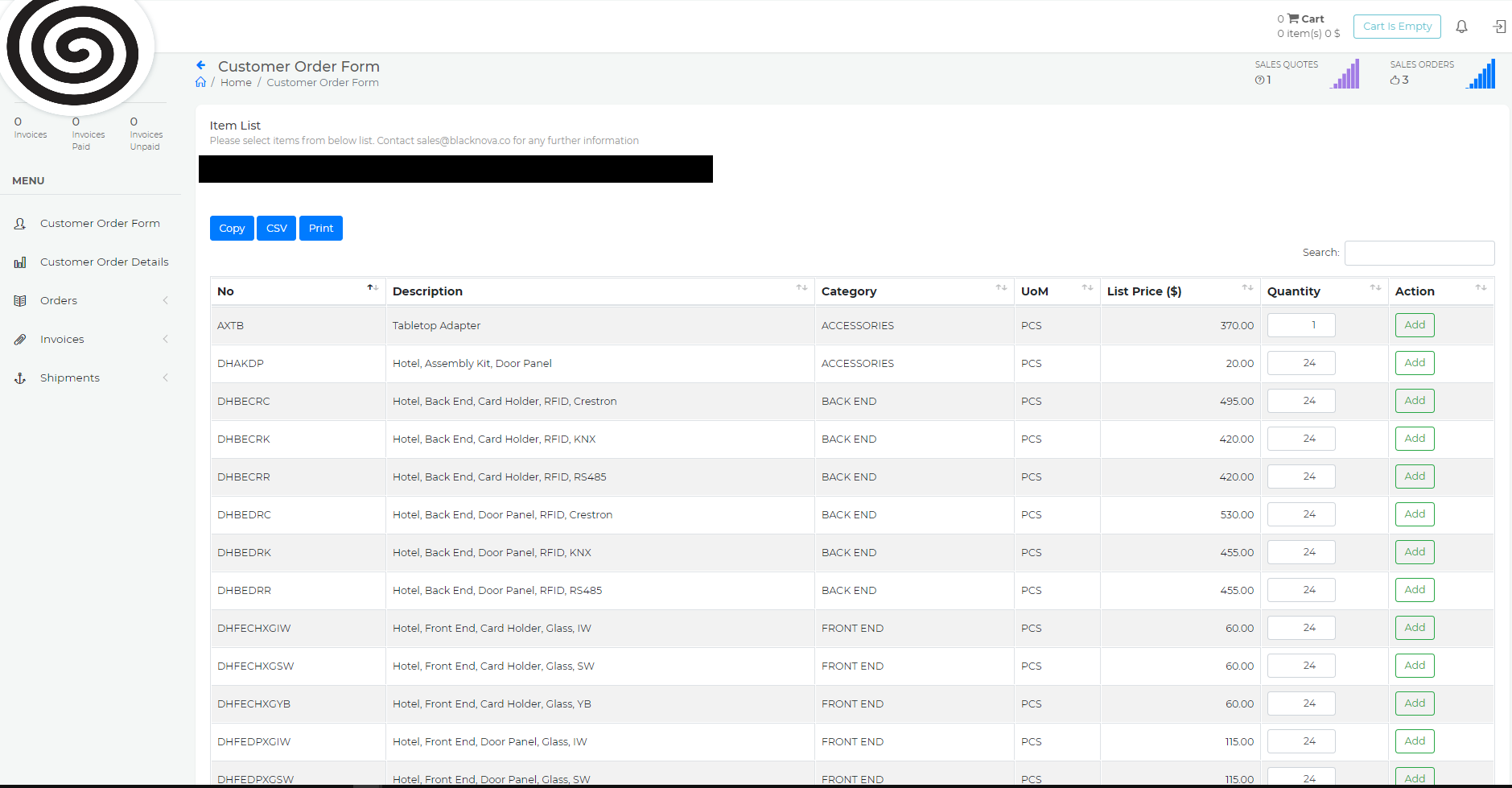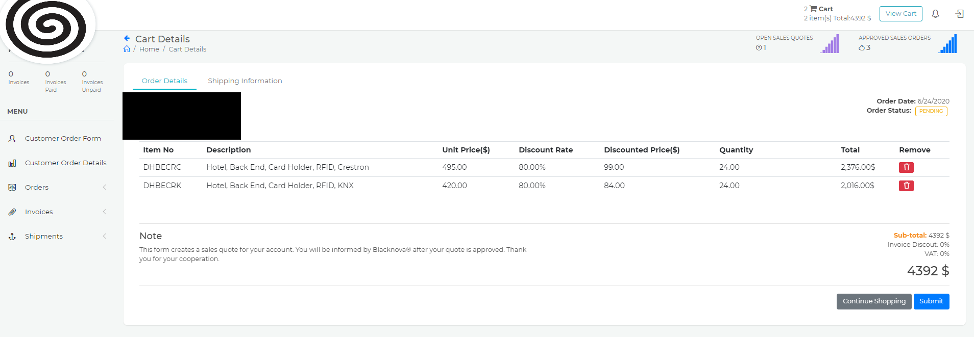 Customer Portal is a ASP.NET Web application which builded with MVC with using microservices and OOP structure. Each customer has a password section in NAV(Customer Card), and they will be able to access customer portal once an Username and Password provided by authorized user. Customer can create a Sales Quote by in NAV by ordering from Web Application, check open sales quotes,orders,shipments,invoices and all open order status from left hand side menu.